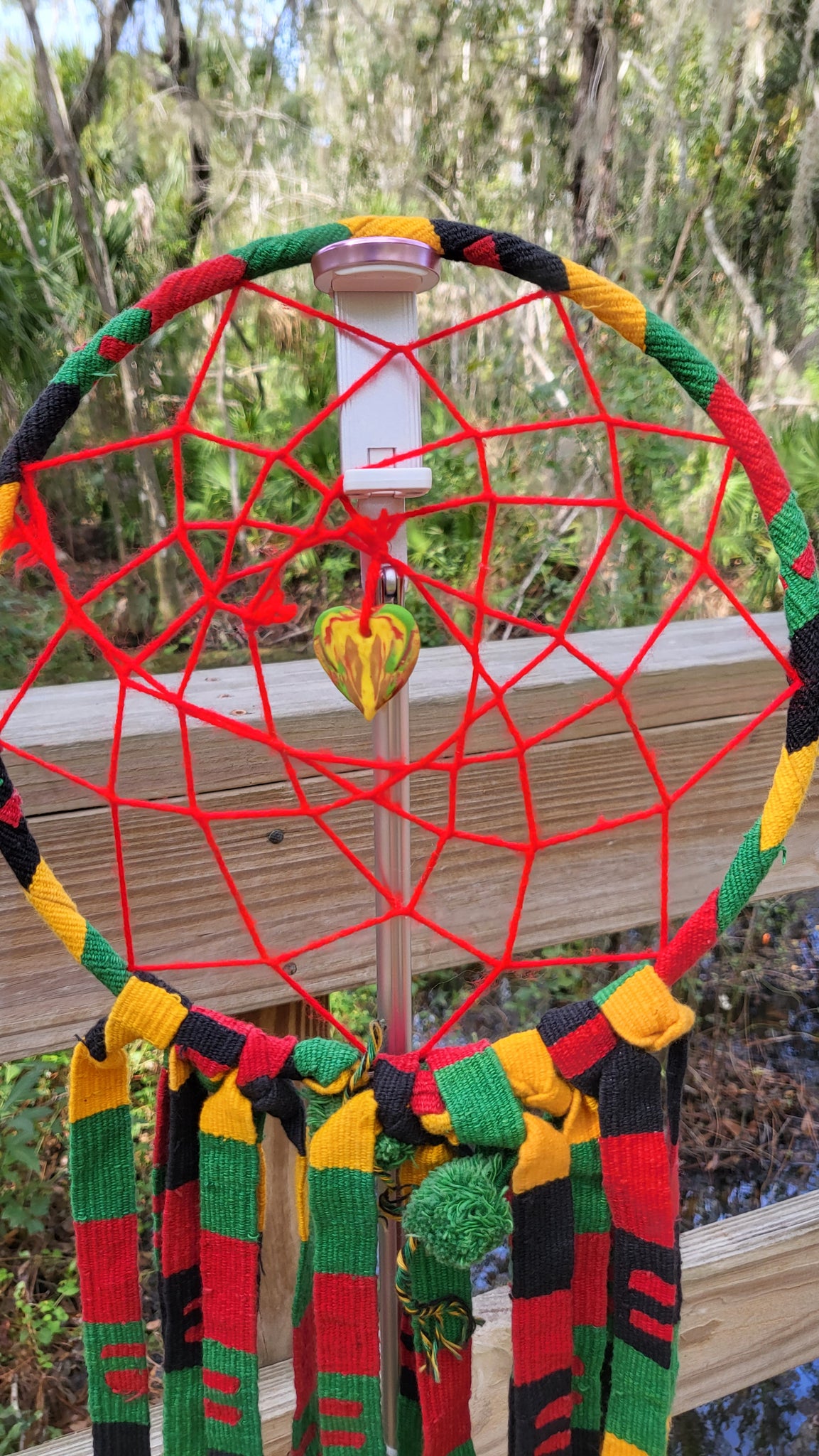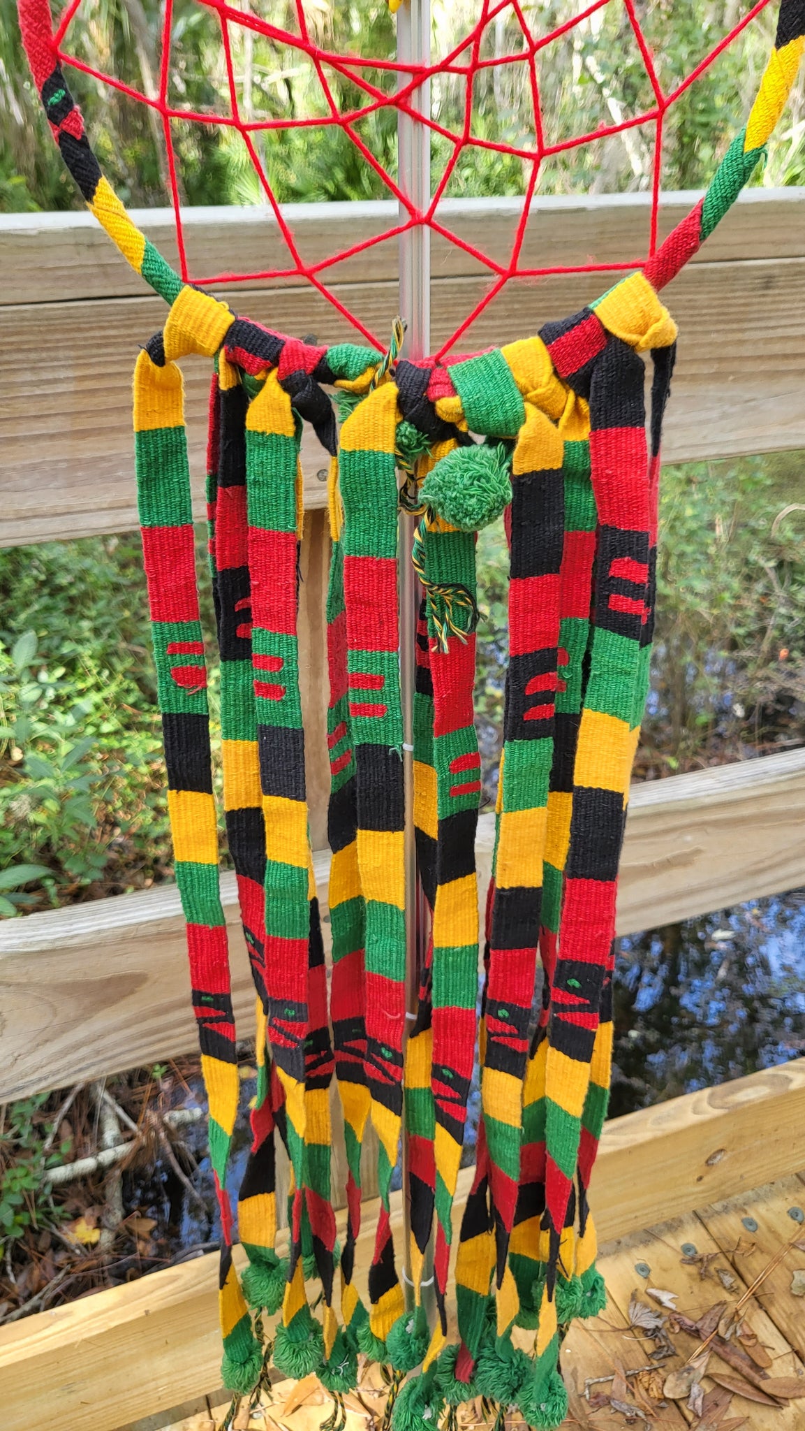 Handmade and crafted dreamcatcher made from Guatemalan ToTo Belts. Perfect to decorate your homw with Reggae Inspired vibes